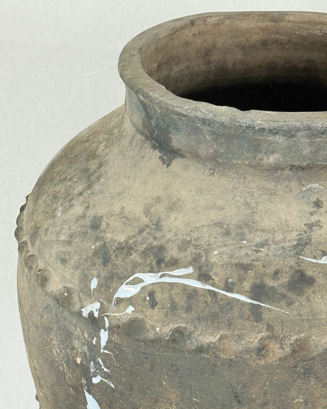 This rustic pot from Anatolia, Turkey, exudes history and charm. Originally used to store olive oil, honey, water, or wine, it is made from terracotta clay and has developed a rich, aged patina over time. Some pieces can have subtle oil stains, adding to their unique character. Hand-thrown and one-of-a-kind, each pot makes a striking decorative statement for the home or garden.
